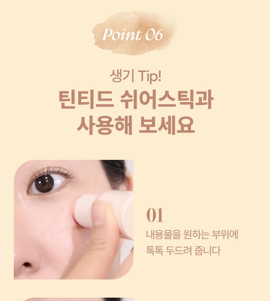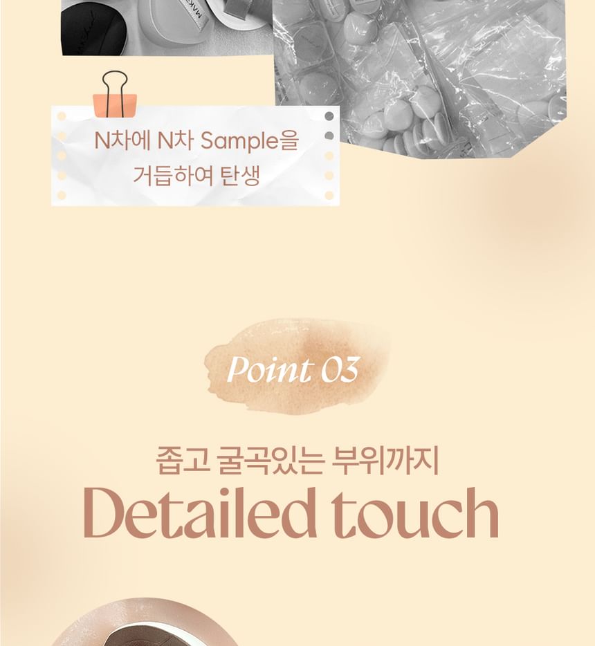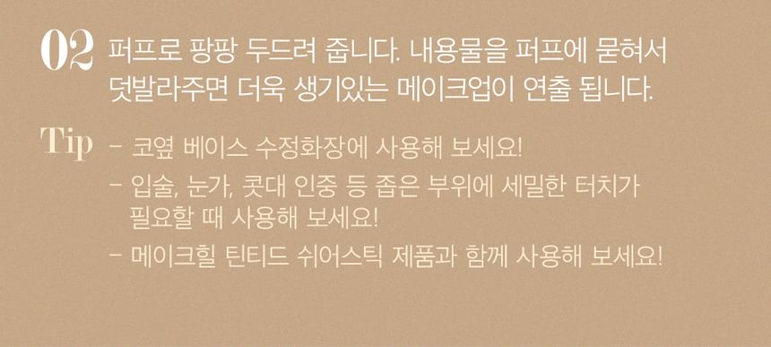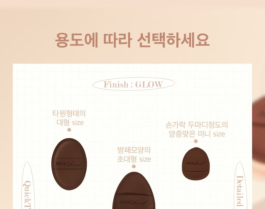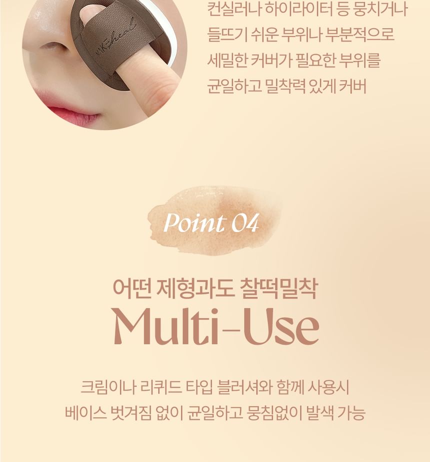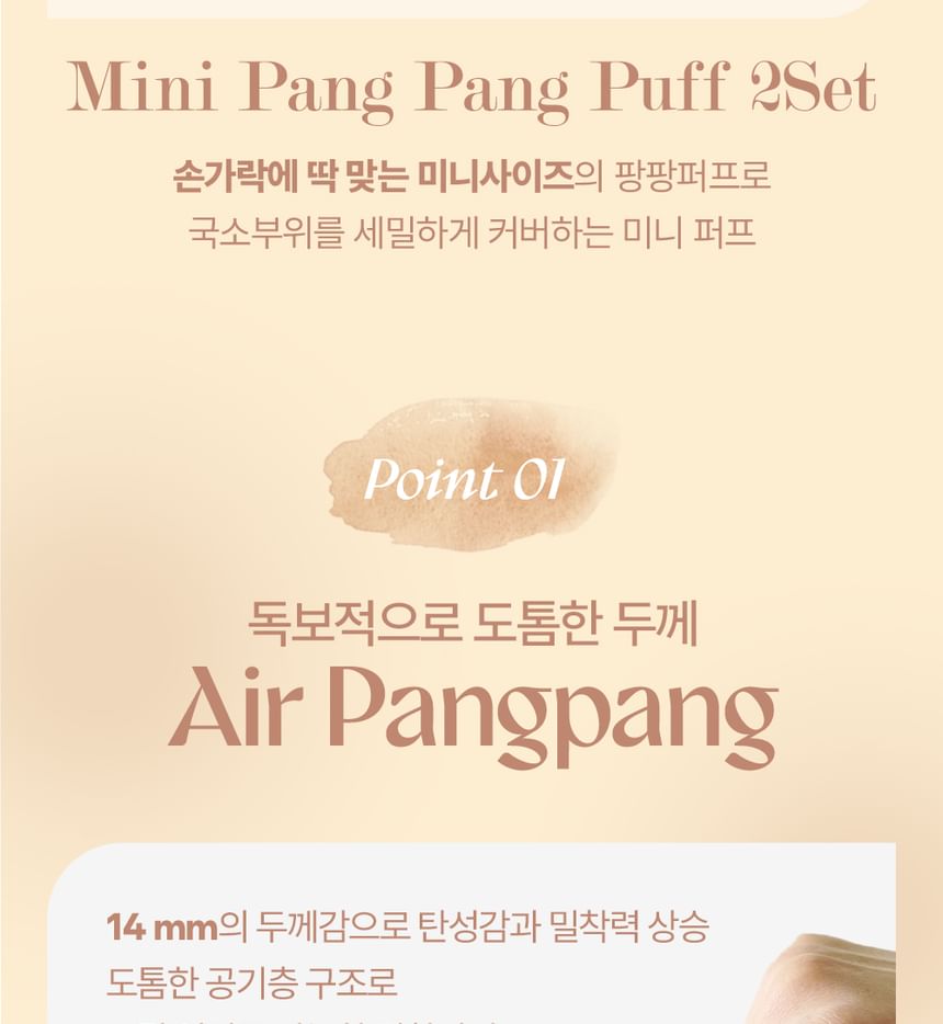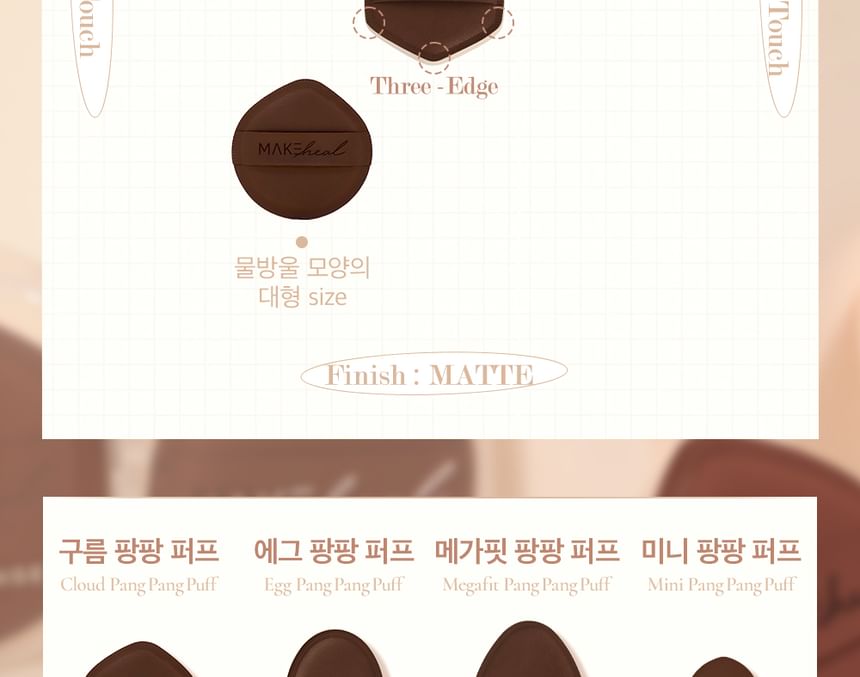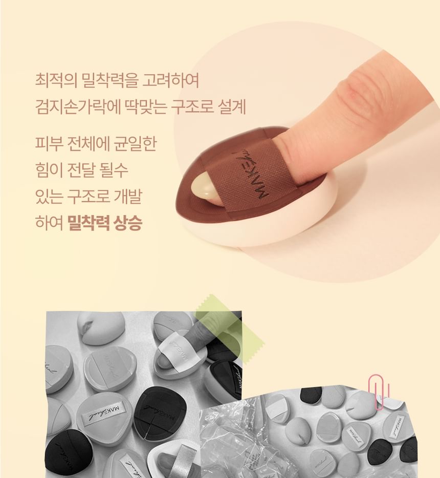 • After applying the product onto the skin, use the puff to lightly tap on the desired areas to blend out evenly.
